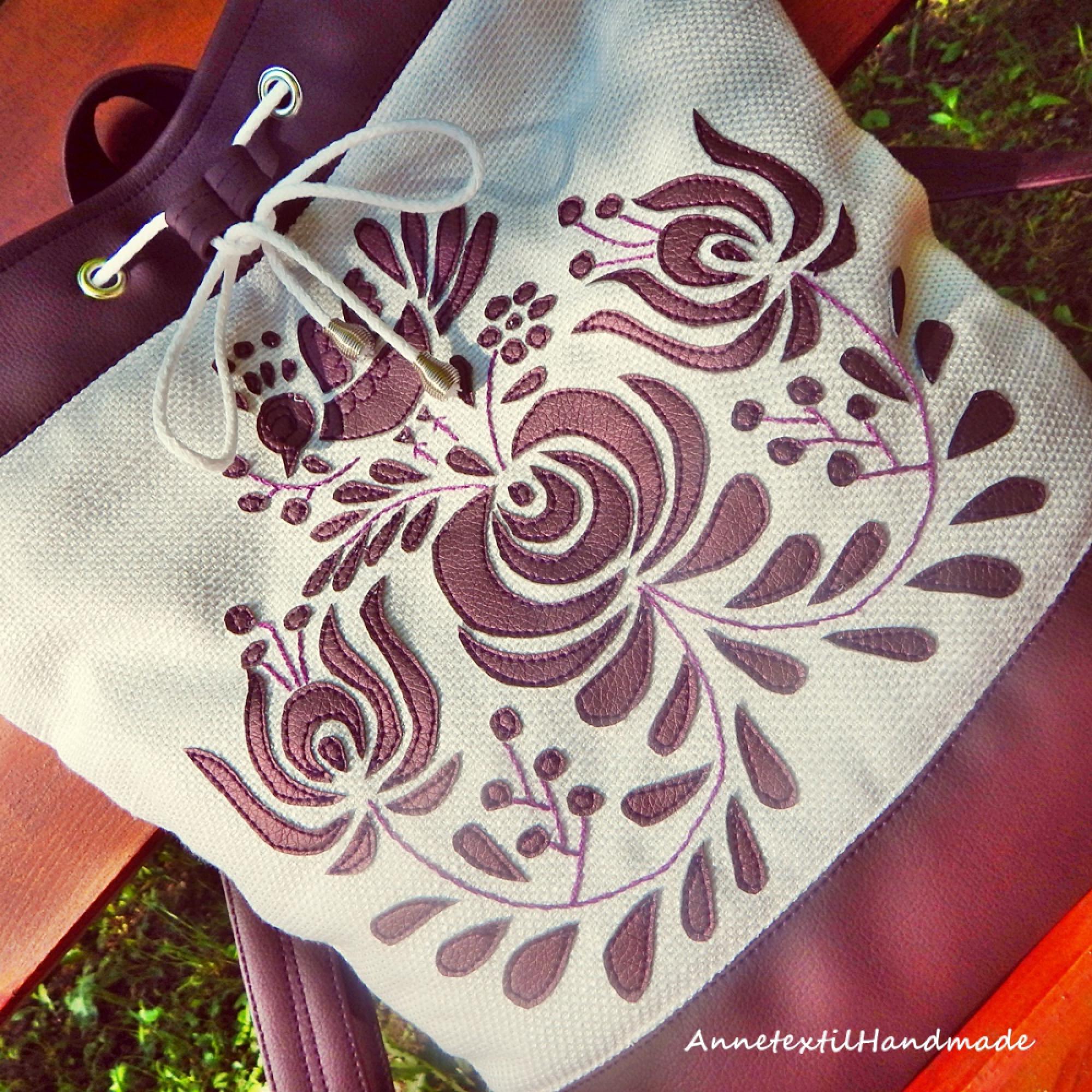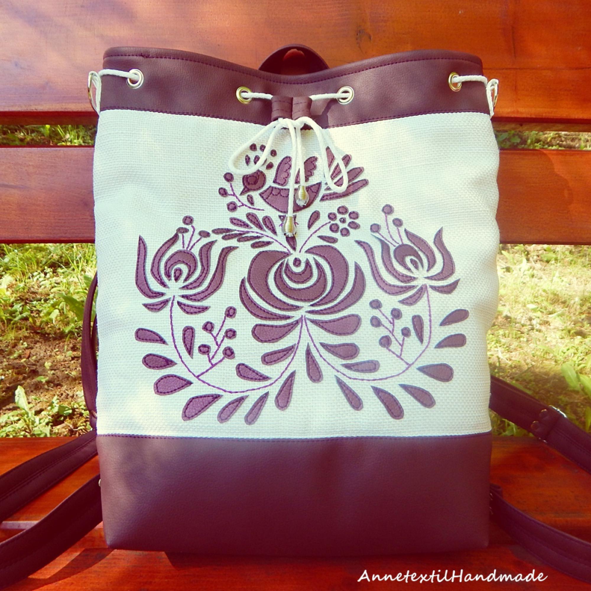 Matyó madaras többfunkciós hátizsák/oldaltáska szilva