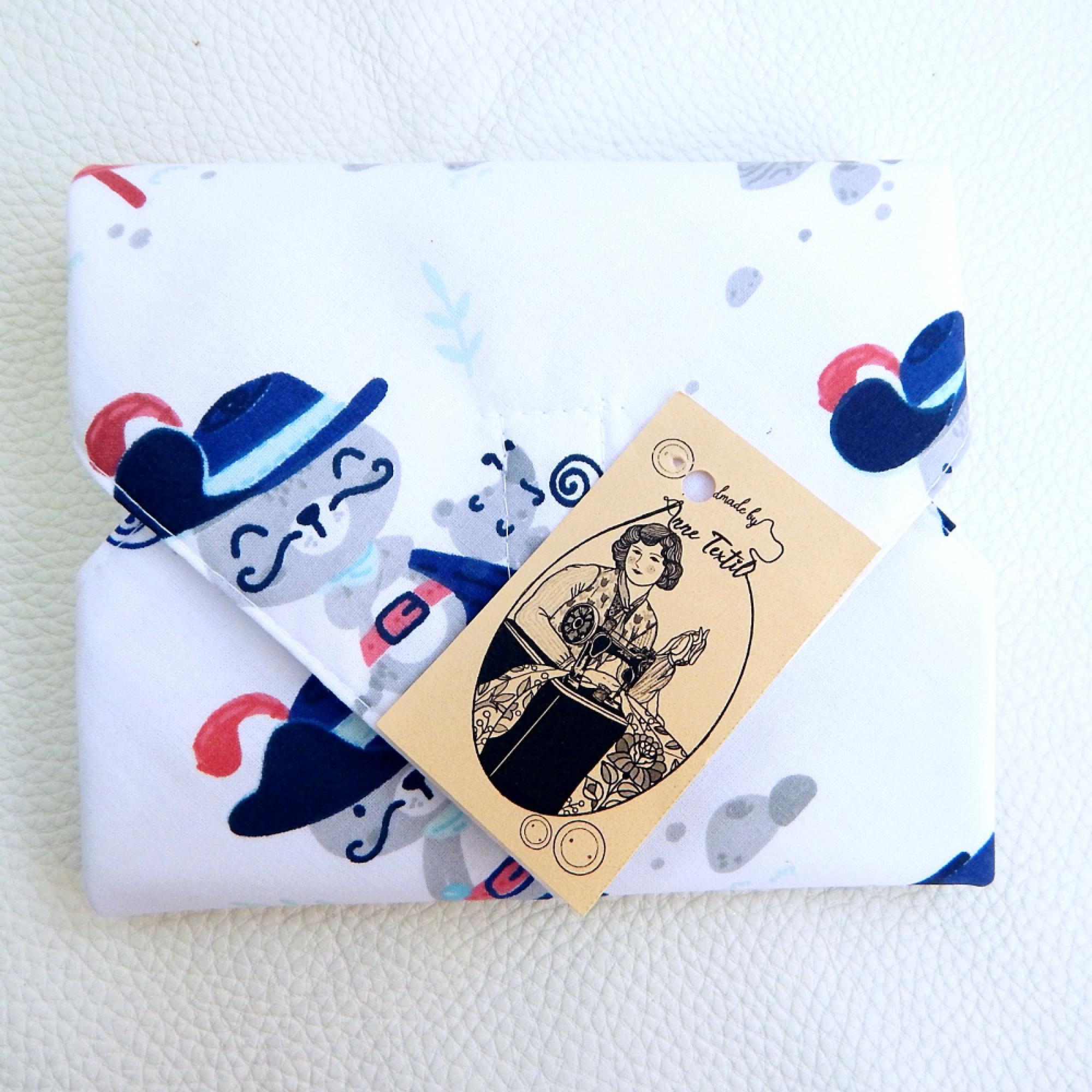 Formatervezésnél az egyik sarkát levágtam, követve a hagyományos borítékok formáját, a négy sarokra tépőzárat varrtam, mellyel fixen tudod rögzíteni, méretét szabályozni. Használata könnyű és praktikus, könnyen megszerethető.