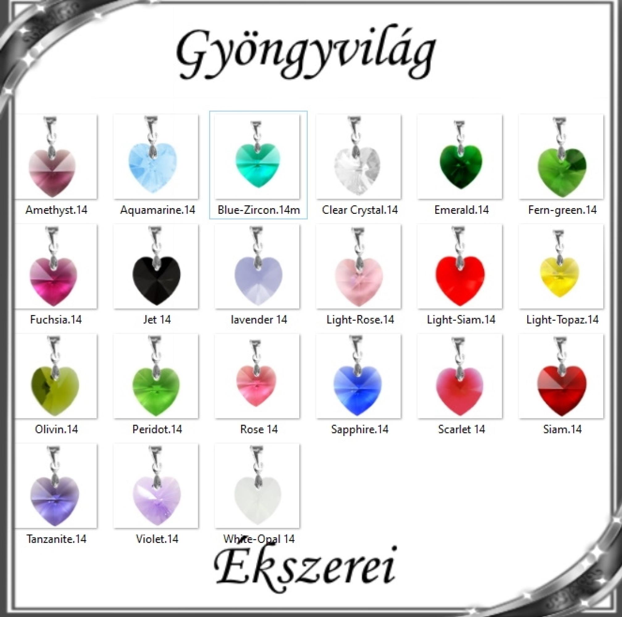 Swarovski kristály fülbevaló-medál -10-10mm-es szív szett több színben