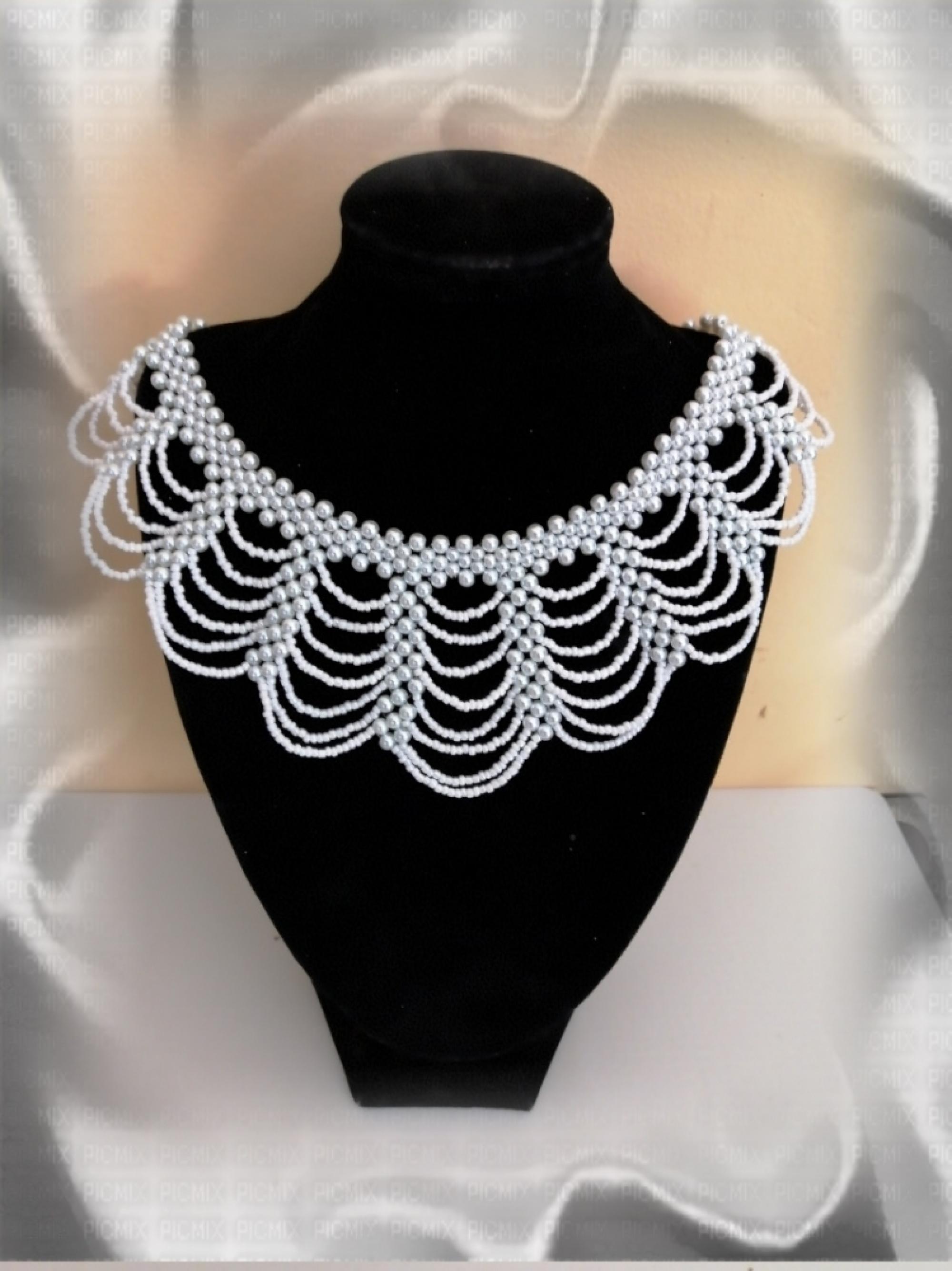 Édesvizi igazgyöngy nyaklánc, ezüstözött kapoccsal SLEB-IG06 6,5x8 fehér