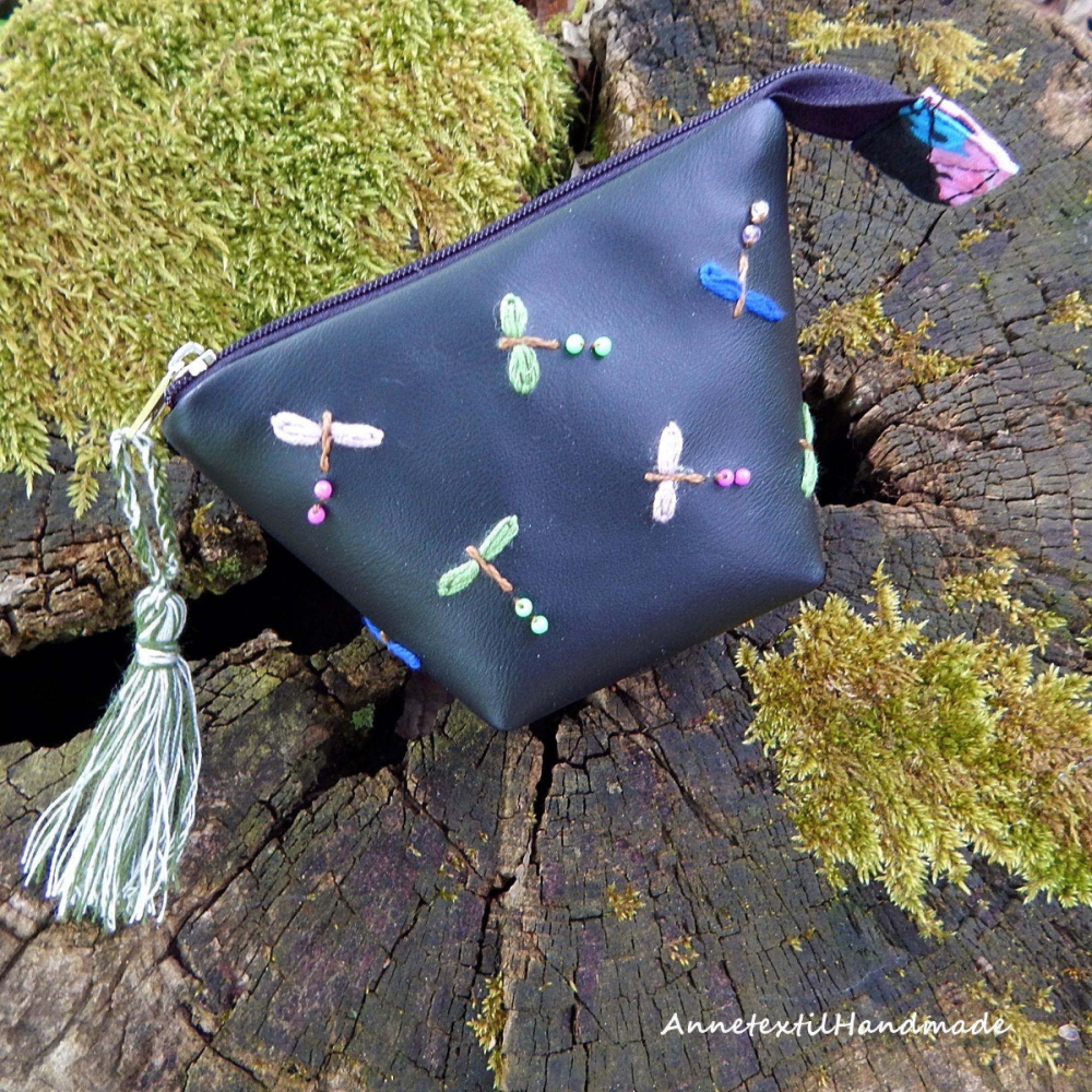 Egy cipzáras neszi mindig jól jön :) Kisebb méret az apróságok rendszerezésére. Ezt a neszesszert fekete színű, textilbőrből készítettem, az elején a gyöngyökkel hímzett szitakötő mintát kézzel hímeztem egyedileg, saját tervezés alapján. Bélése fekete alapon mintás pamutvászon, melyet vlies lapra szteppeltem, formatartó. Cipzárral záródik. Méretének ellenére sok apróságot képes elnyelni, formáját úgy alakítottam ki a készítés során, hogy sokrétűen használható legyen. Mérete: - magasság: 8 cm, - szélesség: felül 12 cm, - talpa : 6 x 7 cm Szállítás MPL csomagként a Magyar Posta díjszabása szerint