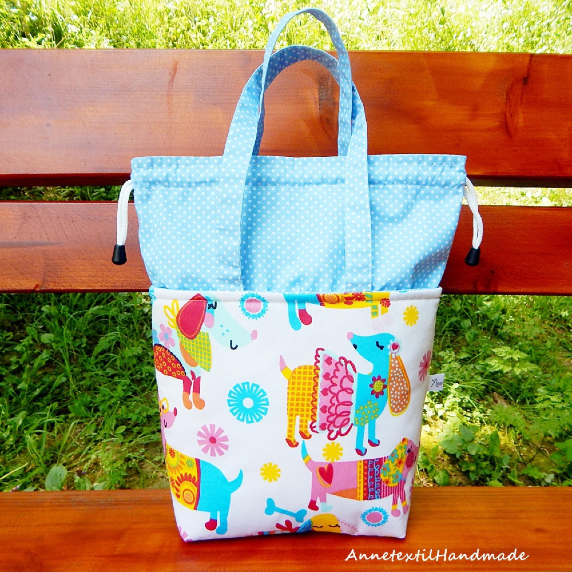 Ebben az ajánlatban közepes méretű fehér alapon színes ruhás, vidám kutyás és világoskék alapon pöttyös mintás pamutvászonból készült modellt hoztam, melynek bélése vízhatlan, nedves szivaccsal letörölhető PUL béléssel készült, a rétegek között merevítőkkel megerősítettem. Mérete: Magassága 33 cm, szélessége 29 cm, talpa 20x10 cm