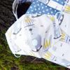 Ez a modell kívül beige alapon indián nyuszi mintás pamutvászon, belül vízhatlan PUL anyag, a rétegek között megerősítéssel készült, zsinórral összehúzható és kézi fogóval is rendelkezik. A szett részei: - 1 db Kids Bag - 1 db 3 rétegű arcmaszk - (színes pamutvászon/PP nem szőtt maszk anyag/fehér vászon, orrmerevítő dróttal, normál méretben Kids Bag - Uzsonnás táska mérete: - magasság 27 cm, - szélesség 27 cm, - talpa 12 x15 cm Arcmaszk mérete: 13x21 cm (a legszélesebb pontokon mérve) puha gumival