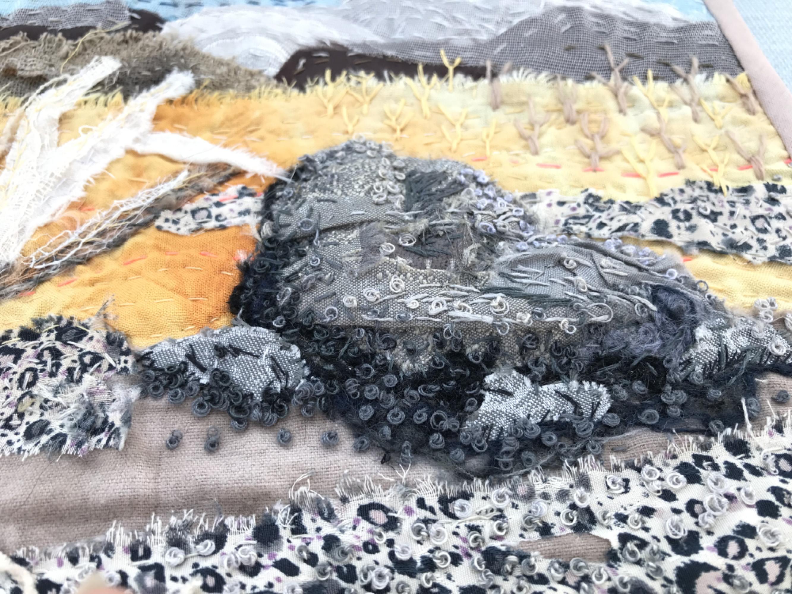 Hímzett fali dekoráció. Vegyes technikával: textil, hímzőfonal használatával készült, kézimunka. Festmény hatású, mégis a motívumok 3D hatásával életre kell, így részévé válik a környezetének. Hangulatos tájkép, homogén színei kellemesen illik bármilyen helységben. Otthonába vagy munkahelyén egyaránt.