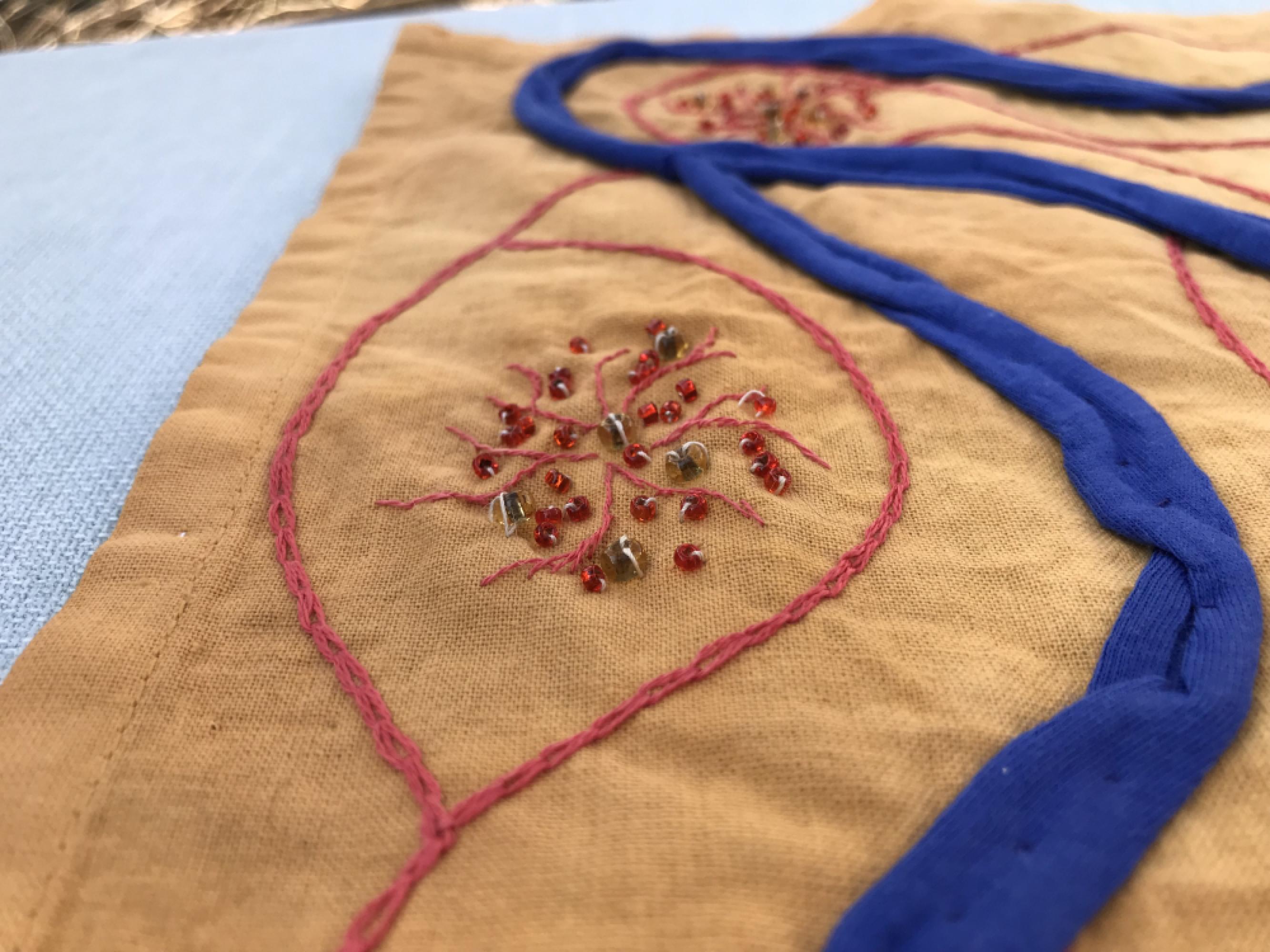 Kézzel hímzett fali dekoráció. Batikolt narancs árnyalatú pamut anyagra hímzett hálómotívum, gyöngyökkel díszítve, kék pólófonal rátéttel. Élénk, harmonikus színeivel, dinamikus körkörös formájával vidám hangulatot áraszt szobájában. Tisztítási javaslat: Távolítsa el a porszívó fejét, Helyezzen a porszívó csövére egy zsebkendőt, vagy anyag darabot. Állítsa a porszívó szívóerejét a minimumra, és enyhén megdőltve,-nem merőlegesen- egyszerűen tisztítható. Vagy csak rázza ki belőle a port. Csak kézi mosást alkalmazzon, ha nedvesen akarja tisztítani.