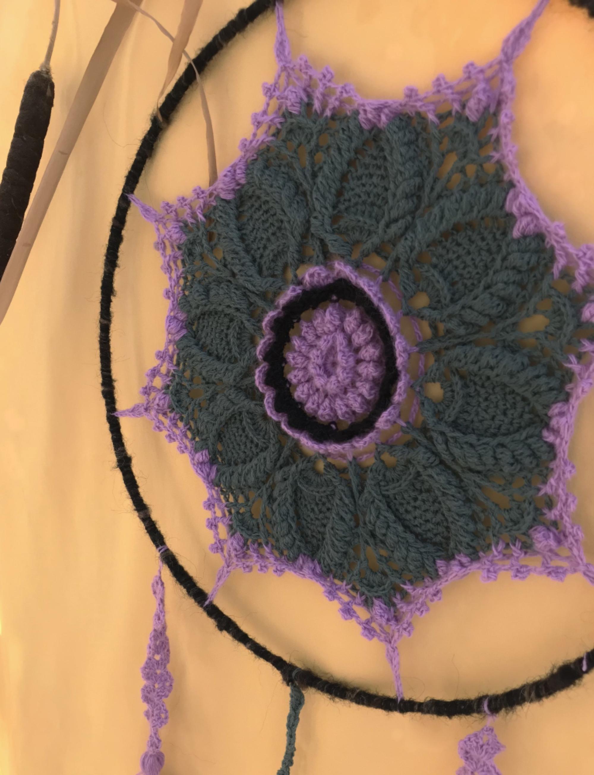 Kézzel horgolt, kisebb méretű, 3 dimenziós mandala. Falra, ajtóra függeszthető. Az örökzöldek és a virágos mezőket idézi színeivel. Személyes kedvencem.