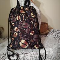 Ragyogó kávészemek,érzed az illatát, már csak egy jó ☕hiányzik. Kívül-belül vízálló anyagból készült, belül fekete,egy nyitott zsebbel. magassága 43 cm, szélessége 33 cm, zsinór 2x1.60 cm. + tolltartó/neszivel