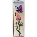 Savmart üvegre festett, rézfóliával keretezett kép.