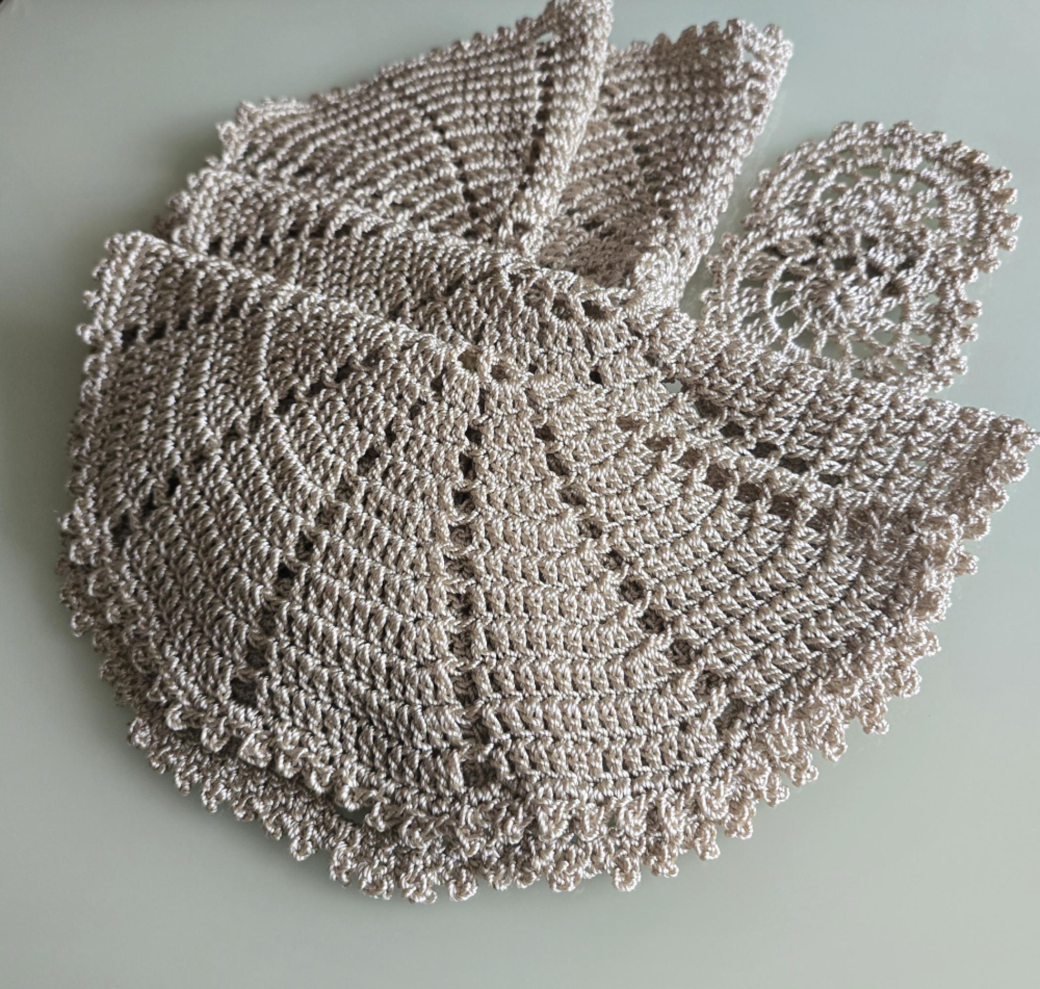 Asztal is kell dekorálni, legyen hétköznap vagy ünnep. Világos szürke színben készült, mivel semleges színűek, így könnyen igazodnak a készlethez. Horgolt és mosható műszálas fonalból készült. Ajándéknak is kitűnő választás!