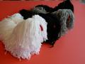 Játék kutyus. Kitűnő Ajándék! Saját tervezésű,kivitelezésű darab! A képek magukért beszélnek. Van fekete és szürke is itt a boltomban. A legjobb szobatársa lehet gyermekünknek. Fontos megjegyeznem: -nem kell etetni -nem lesz folt a szőnyegen -nincs szőr allergia Viszont: -édes -sétáltatható és bárki kedvence lehet. Fonalból készült.Damil segítségével mozgatható.Piros filc nyelve van. Korhatár:3-100-ig mindenki szereti. A cicák is nagyon jól reagálnak miután megmutatjuk,hogy nem igazi kutyus sétálgat feléjük.