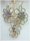 Karácsonyi díszek sújtásból és ezüst hópehelyből. Aprólékos munkával készült dekoratív díszek. Az ár három darabra vonatkozik! Aranyszín szalaggal akaszthatjuk őket a helyükre. Méreteik: 6-7cm átmérőjüek 9m hosszúak az akasztóik