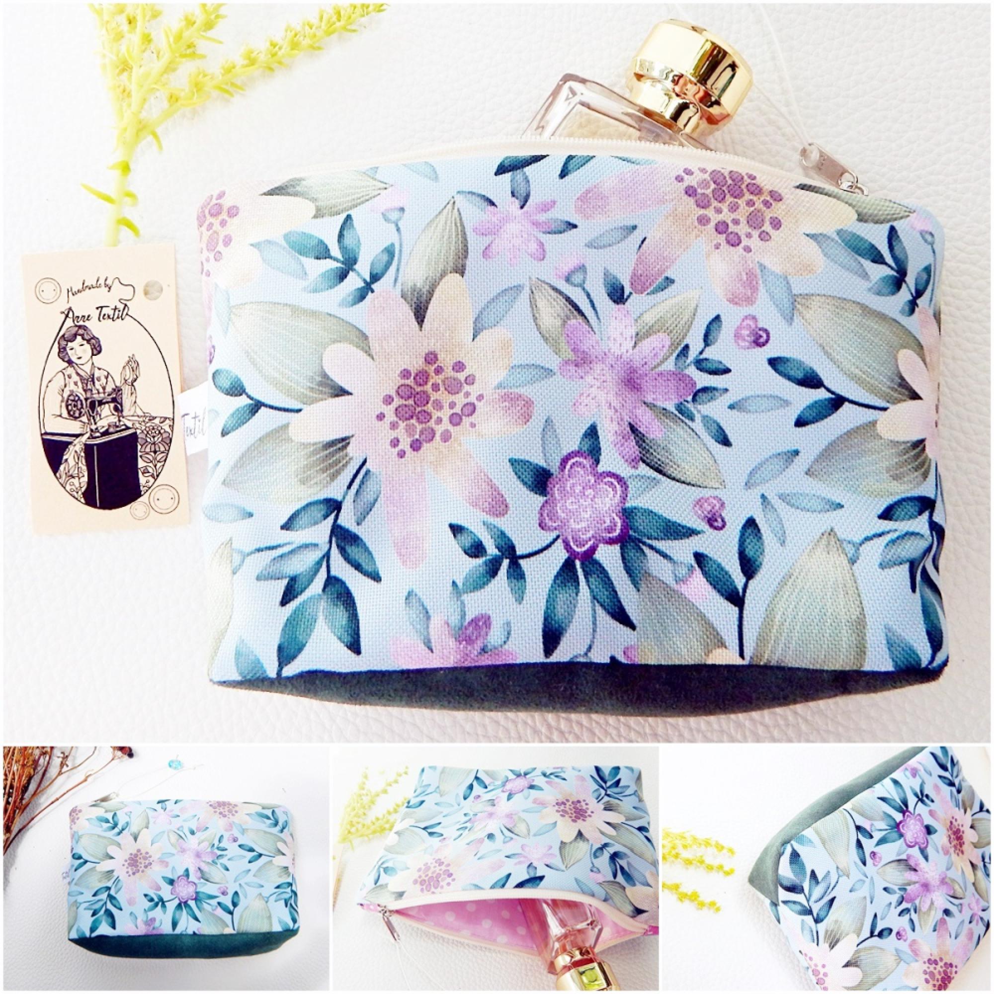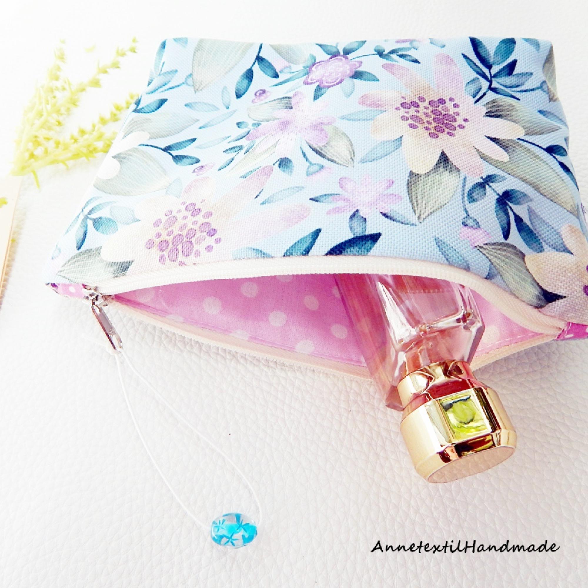 Neszesszer, ék oldalú, pasztell, rózsaszín virágos