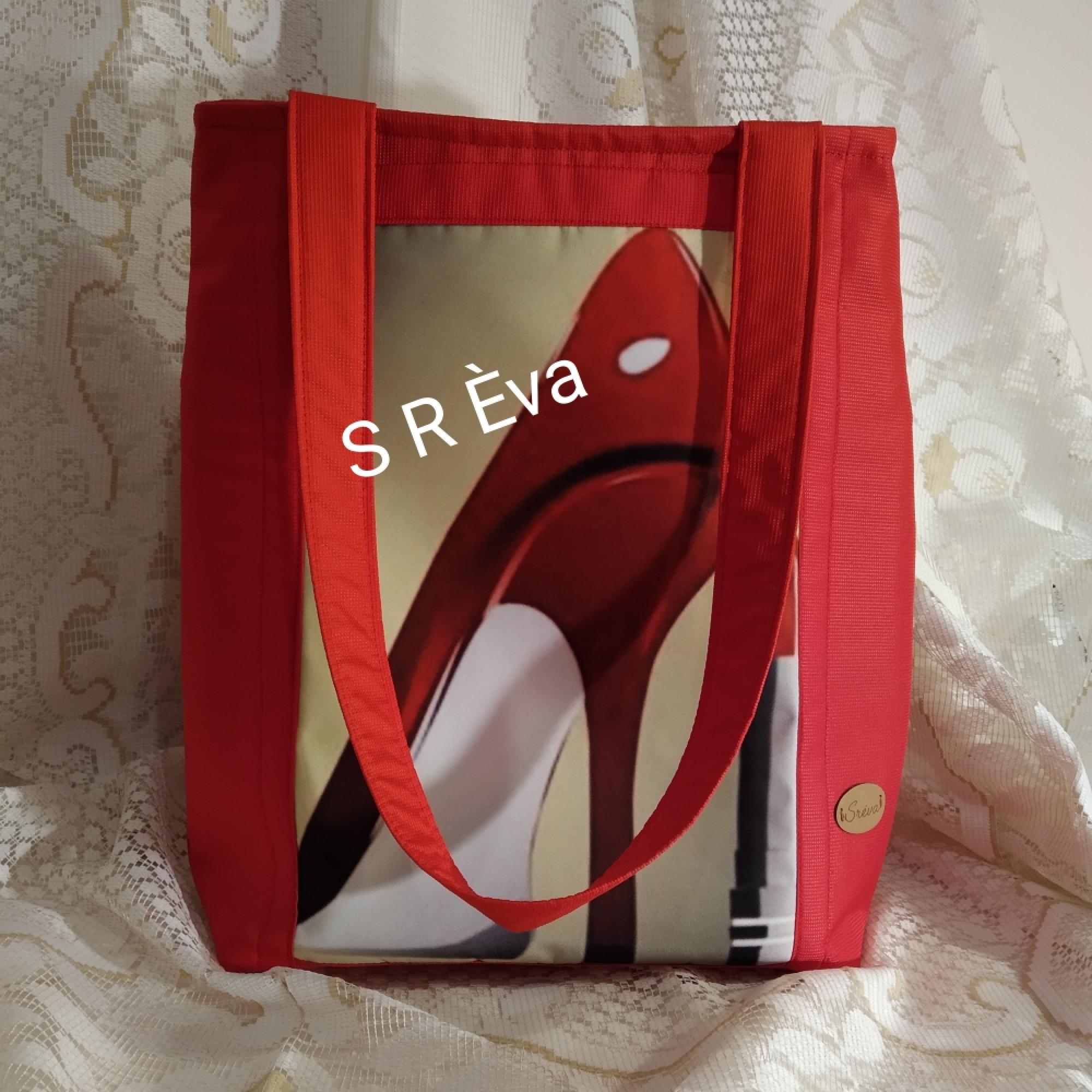 Elkelt! Igazán nőcis táska, mert mi kell egy nőnek, mint cipő & rúzs. Alapanyaga vízálló a díszítéshez használt panel szintèn vįzálló. Nem ázik be. A táskát ,kiváló merevítővel rögzítettem, üres állapotban sem esik össze. Teteje zippzárral záródik hátul szintèn kapott egy hosszanti zsebet. Egyterű, de bő alja miatt remekül pakolható.