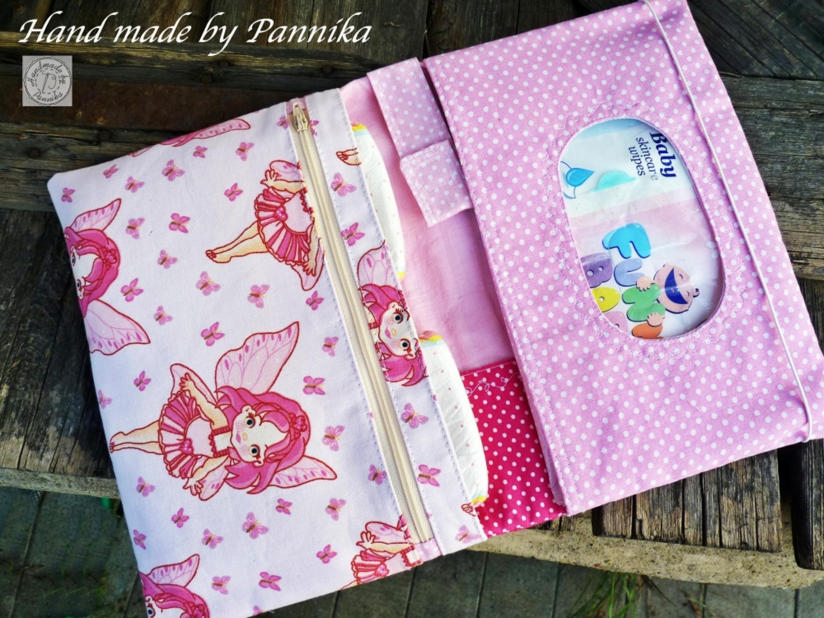 XL méretű Pelenkatartó rózsaszín, pöttyös, angyalkás vászonból. Minőségi pamutvászon, avatva, vetexxel erősítve. Méretéből adódóan a táskába téve ideális hosszabb-rövidebb utakra. Praktikus, mert mindig megtaláljuk benne az éppen szükséges holmikat. Középen cumitartó, alatta zseb, két oldalán a pelenkák, krémek valamint az olajos-kendőt tartó zsebeket találjátok. Anyukák nagy segítsége:) Kiváló babalátogató ajándék! Méretei összecsukva: 19cm x 26cm kinyitva: 26cm x 38.5cm Köszönöm a figyelmet! Pannika