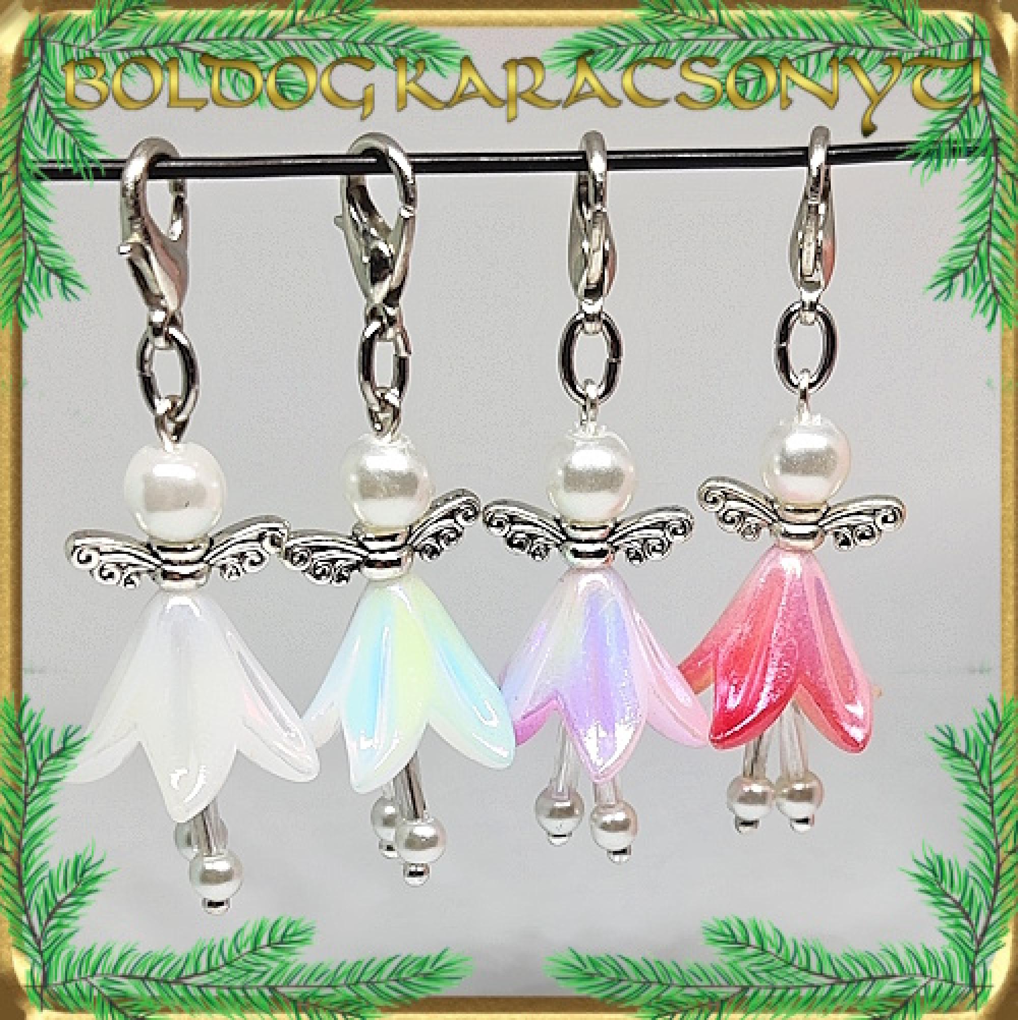Az angyalkák üveg gyöngyből és fém angyalszárnyból készültek delfinkapoccsal. A karácsonyi angyalkák karácsonyfa dísznek , dekorációnak vagy ajándékkísérőnek, kulcskarikán, nyakláncon, karkötőn akár ajándék is lehet. Ar ár 1db angyalkára vonatkozik. A választott szint/szineket üzenetben tudod elküleni. Készlet: 1.: 4db 2.:4db 3.: 4db 4.: 4db