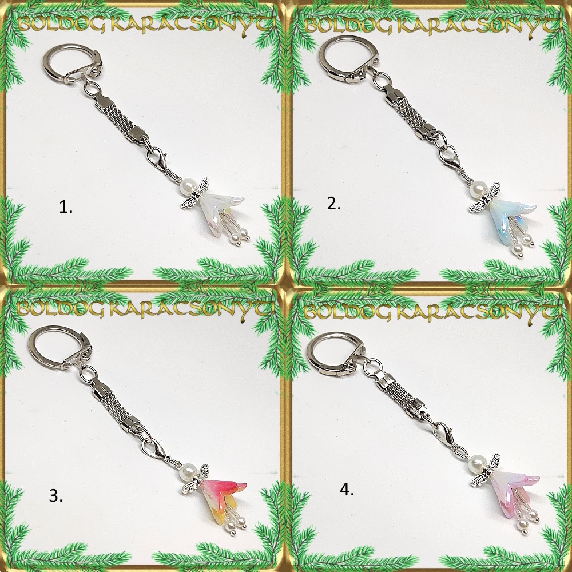 Kulcstartó karácsonyi angyalka figurával. Az ár 1db kulcstartóra vonatkozik. A szint a harmaik fotón tudsz választani. A választott szin sorszámát üzenetben tudod elküleni. Készlet: 1.: 4db 2.:4db 3.: 4db 4.: 4db Az ár 1 pár fülbevalóra vonatkozik.